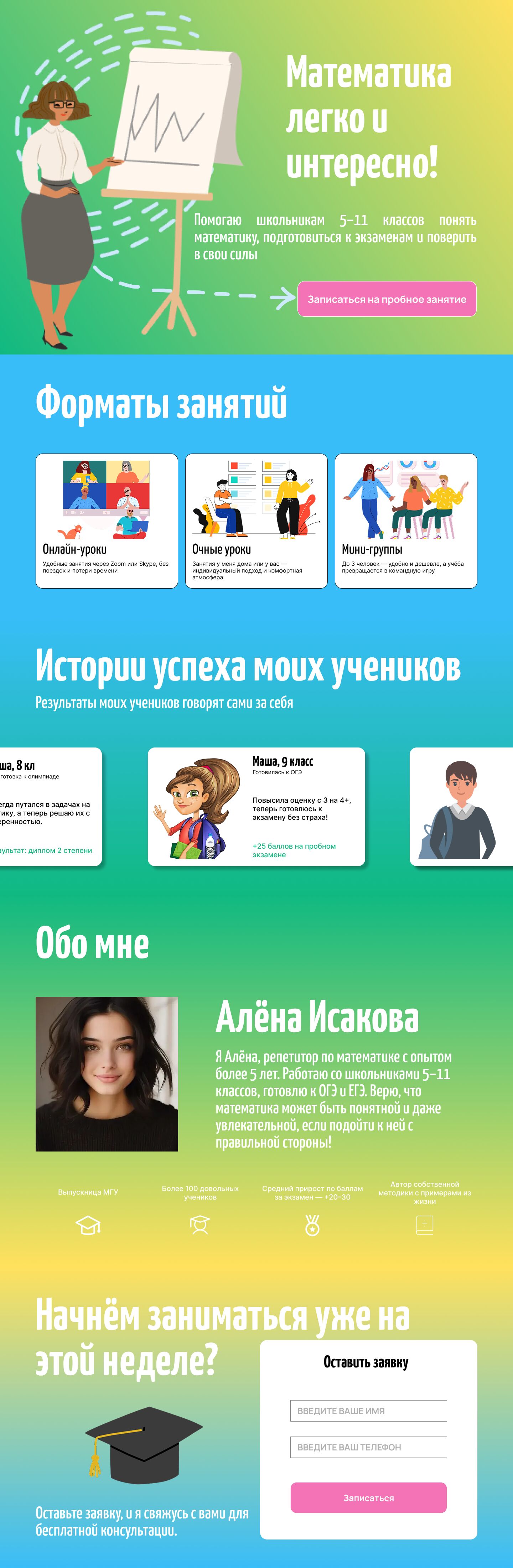 С помощью Figma я создаю уникальные адаптивные дизайны, учитывающие потребности пользователей и современные тренды. Мой опыт охватывает весь процесс разработки — от первоначального концепта до готового сайта. Это позволяет мне адаптировать дизайн для верстальщика так, чтобы его работа в дальнейшем прошла легко, понятно, а главное качественно.